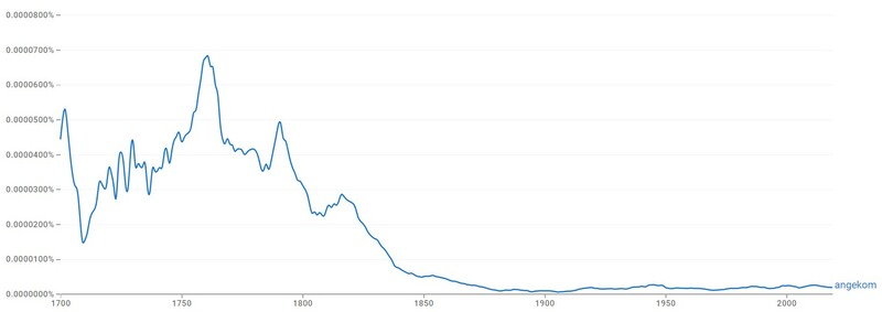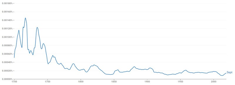 Alternativ zu einem Sammelwerk für kollektiv benutzte Abkürzungen konnten wir aber mittels Googles Ngram Viewer feststellen, dass einige Abkürzungen, die in Mozarts Brief Verwendung finden, durchaus auch bei anderen Werken Anwendung fanden. Zu beachten ist hierbei, dass nur wenige der abgekürzten Worte, insbesondere der Verben, mit dem Ngram Viewer überprüft werden können, da es sich bei einigen Verben bspw. auch um die erste Person Singular handeln könnte, was das Ergebnis der Darstellung verfälschen würde. Untenstehend sind daher beispielhaft vier Wörter angeführt, die im Zuge dieser Recherche überprüft wurden. Auffällig ist zum Beispiel, dass die Abkürzung Sept für September im 18. Jhdt. bereits häufig in geschriebenen Texten vorkommt, sogar durchschnittlich mehr als nach dem 18. Jhdt. Ebenso weisen die abgekürzten Verbformen ausgegang für ausgegangen sowie angekom für angekommen im 18. Jhdt. erhöhte Anwendung auf. Auch das einzelne u für die Konjunktion und wurde schon seit dem 18. Jhdt. fleißig in den Texten verwendet.