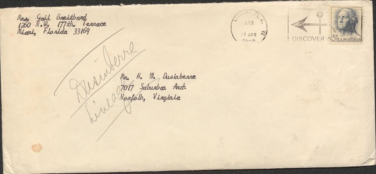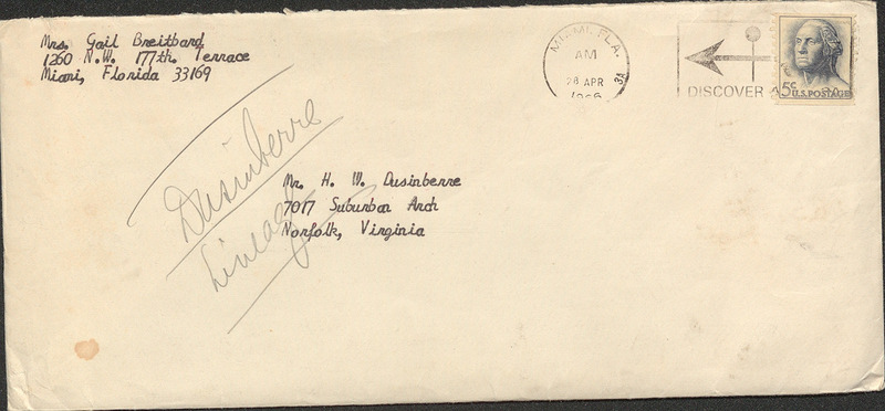 Recipient: Mr. H. W. Dusinberre 7017 Suburban Arch Norfolk Virginia