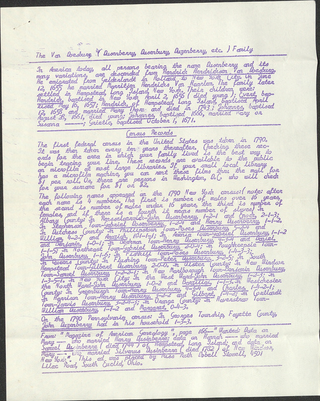Lineage of the Van Doesburg Family in America