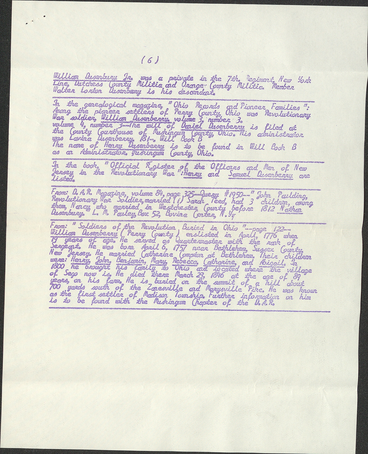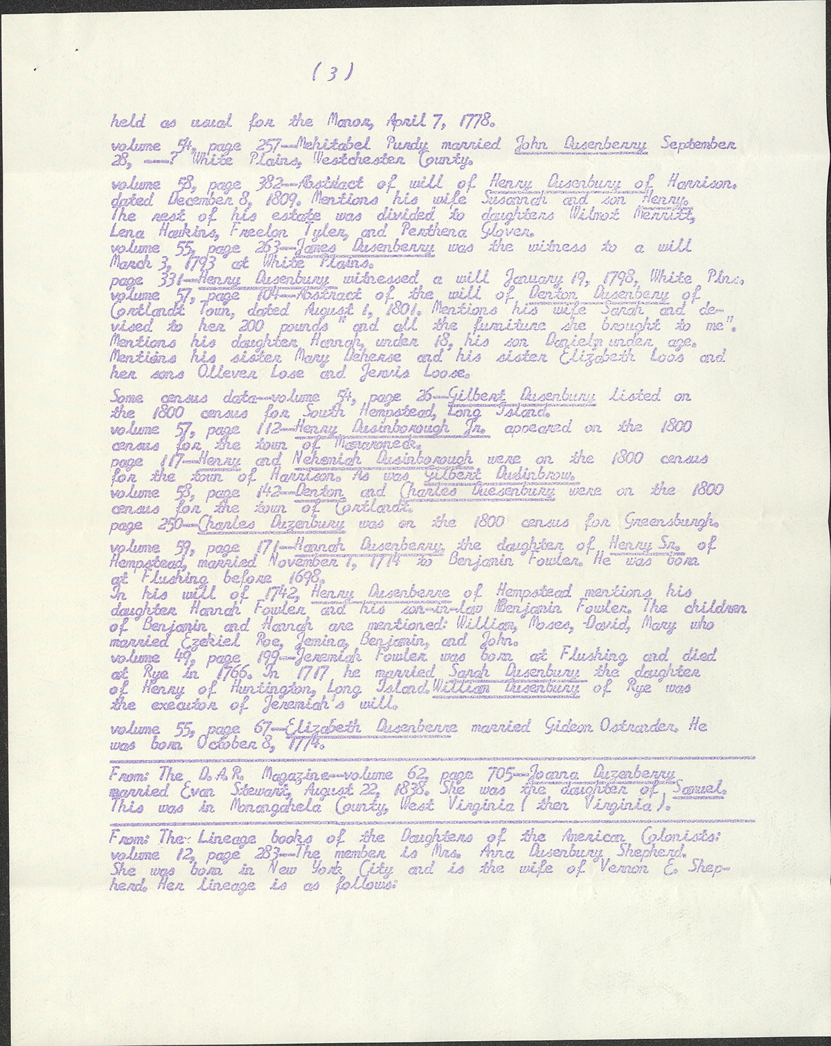 Dusinberre family members (1655-1846)