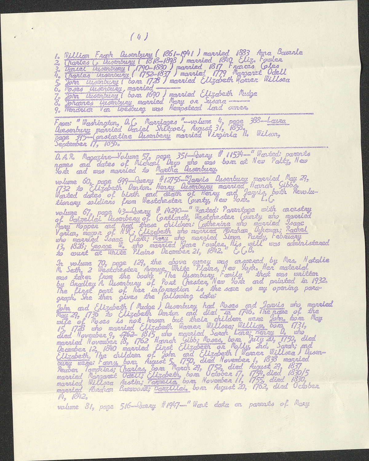 Origins of the Dusinberre family, census records