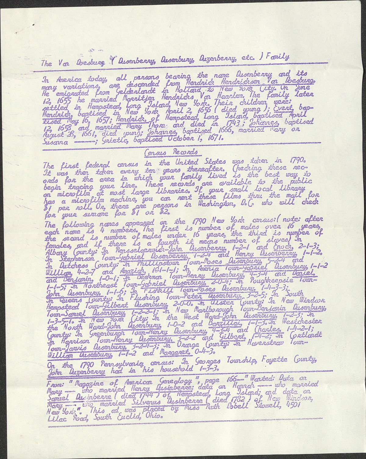 Letter, 13 pages
