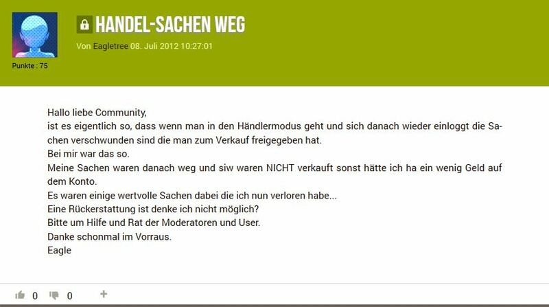 ist es eigentlich so, dass wenn man in den Händlermodus geht und sich danach wieder einloggt die Sachen verschwunden sind die man zum Verkauf freigegeben hat.