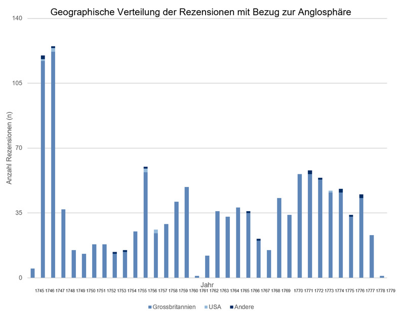 - Geografische Verteilung der Rezensionen innerhalb der (und mit Bezug zur) Anglosphäre