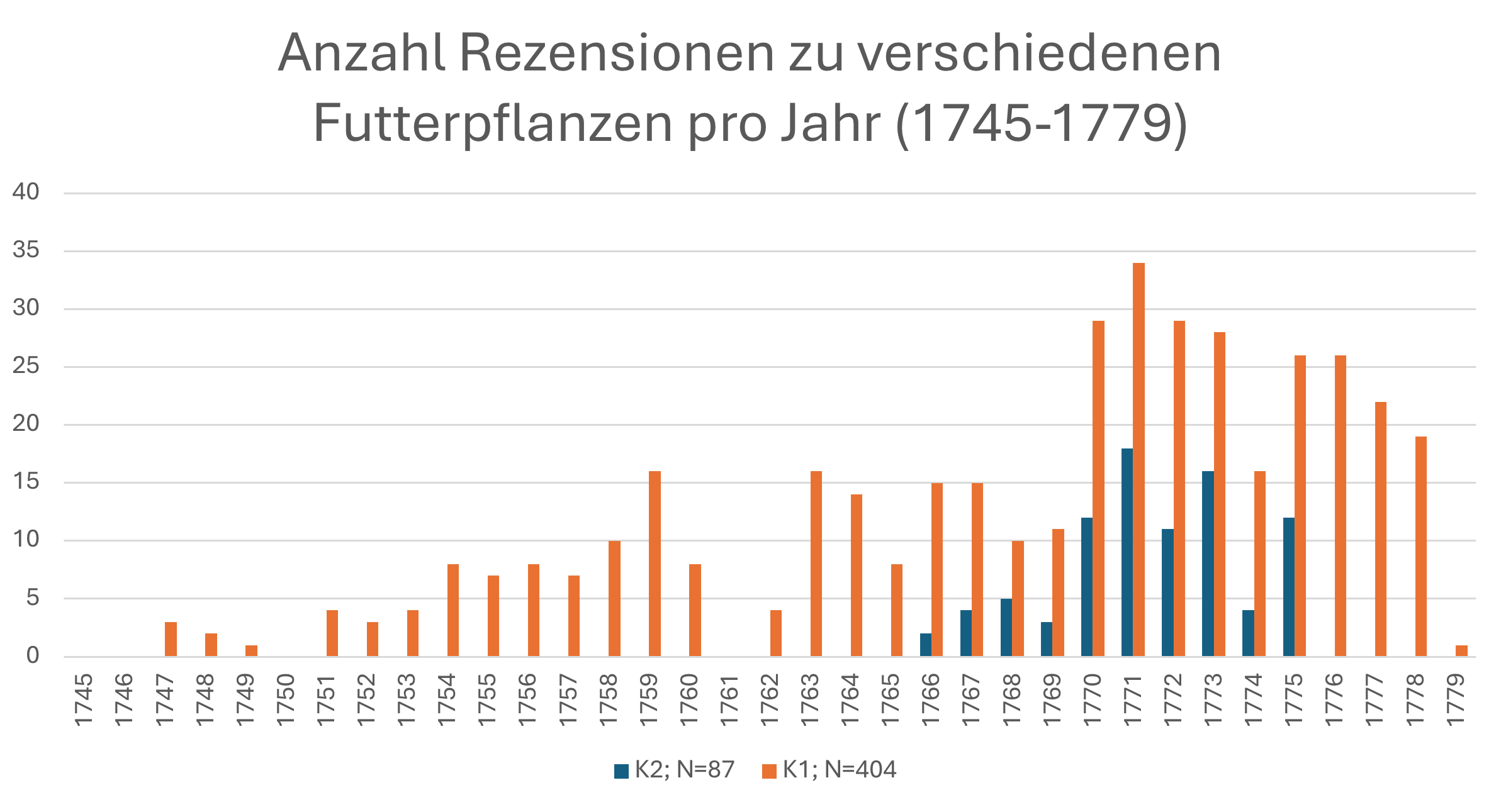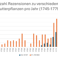 - Anzahl Rezensionen zu verschiedenen Futterpflanzen pro Jahr (1745-1779)
