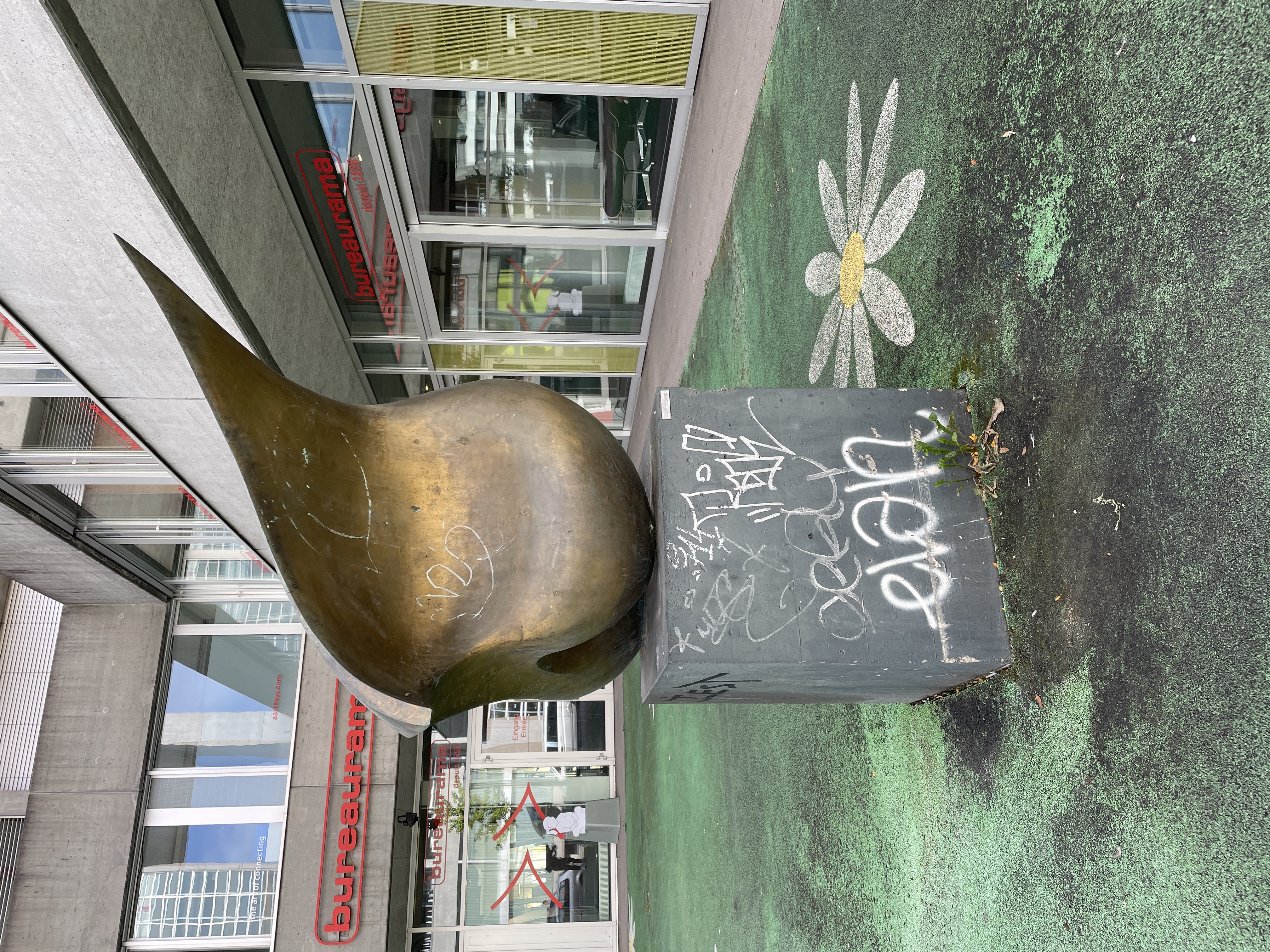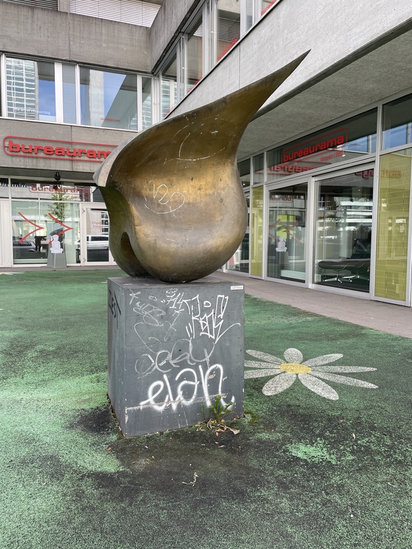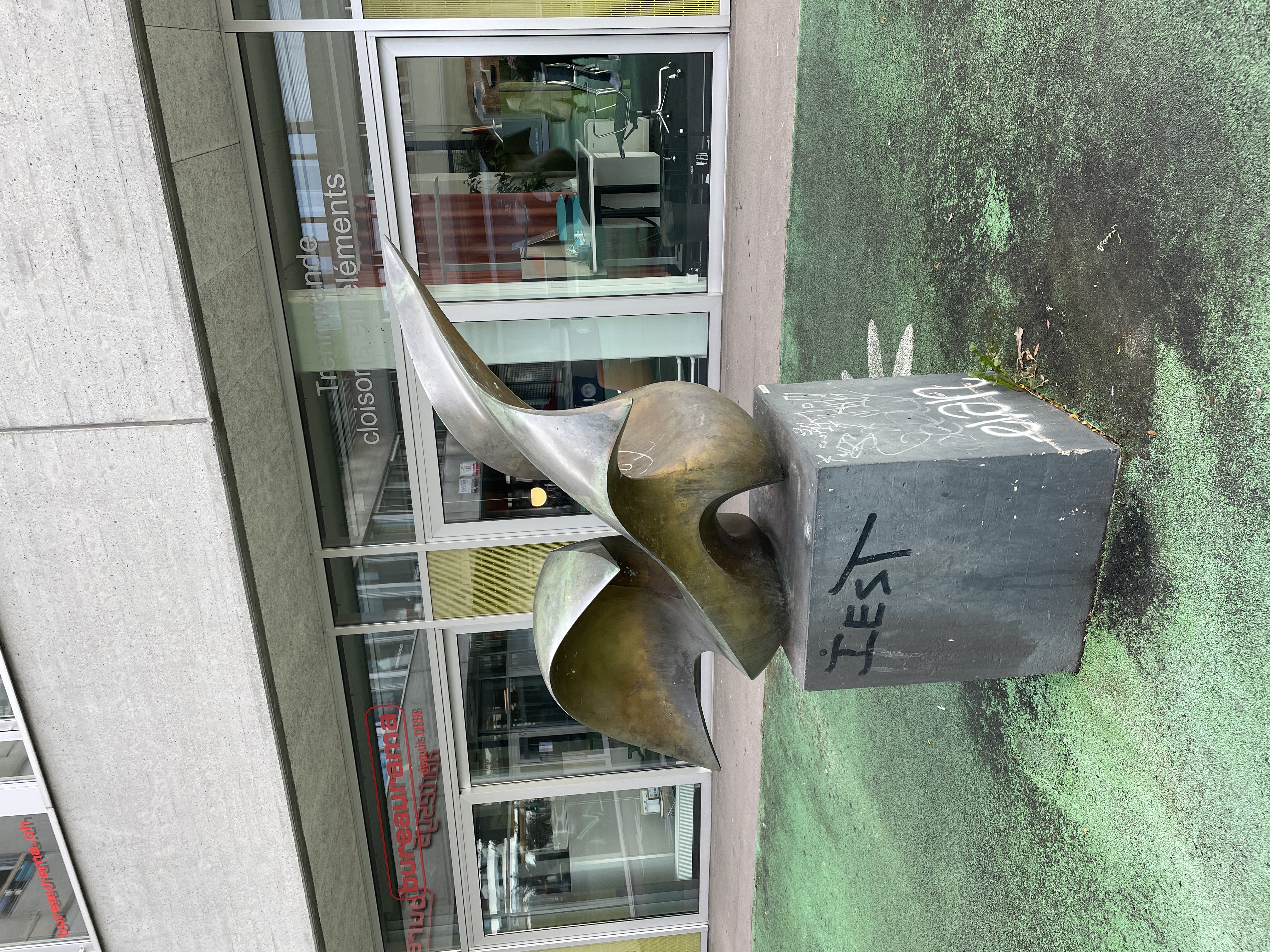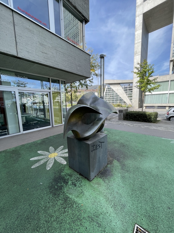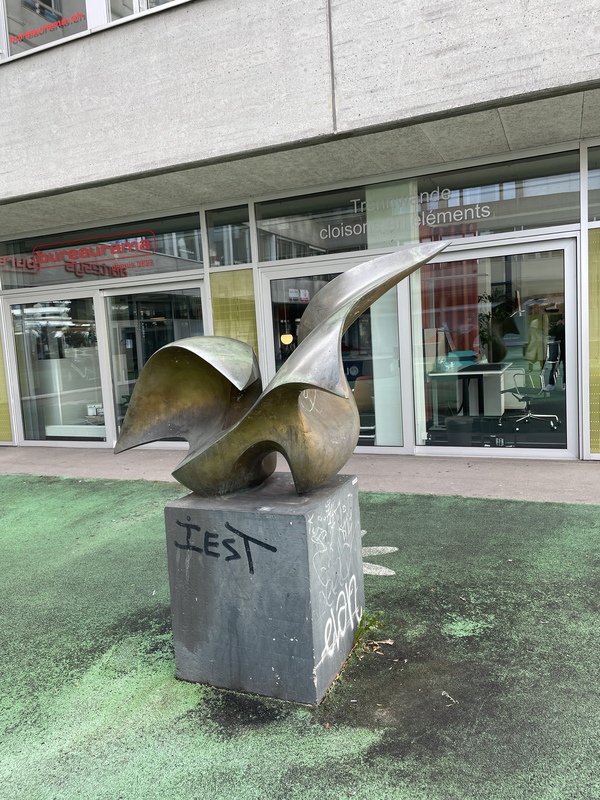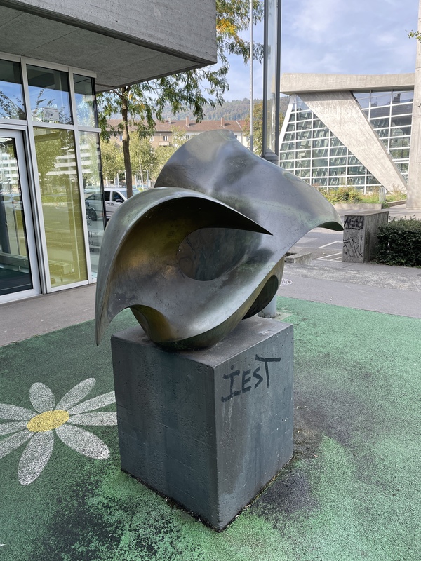 - Die Skulptur befindet sich an der Silbergasse gegenüber vom Kongresshaus auf der „Bielmatte“.