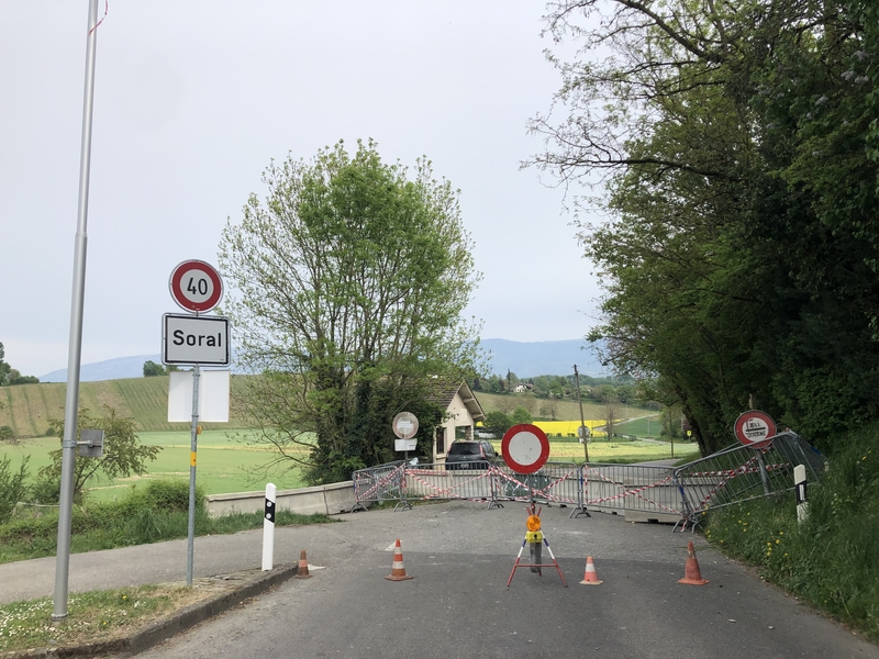 - Des barrières ont été installées à la douane de Soral pour interdire le passage en France.