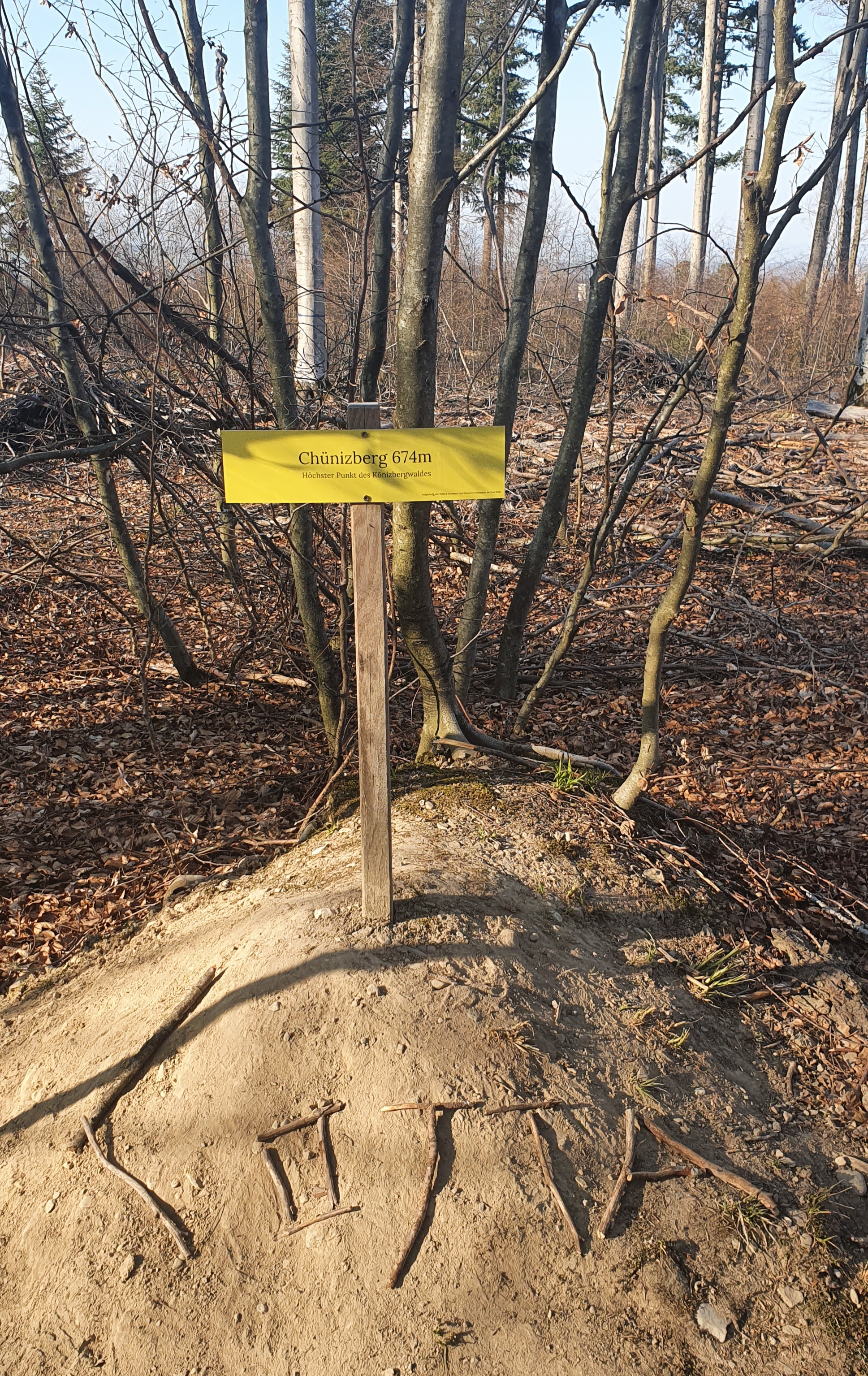 Früh am Morgen, noch in der Dunkelheit machten sich Sir Edmund Biddy und sein Scherpa Sancho Panza auf, um den Gipfel zu erklimmen. Bei Sonnenaufgang in Mitten eines Erdwalls an der Nordflanke jener Anhöhe hielten sie kurz inne. Sie lauschten andächtig des einheimischen Vogelgezeitschers, bevor der nächste Dübel in das Massiv gehämmert und sie forschen Schrittes jenen erhabenen First bezwangen