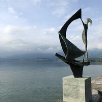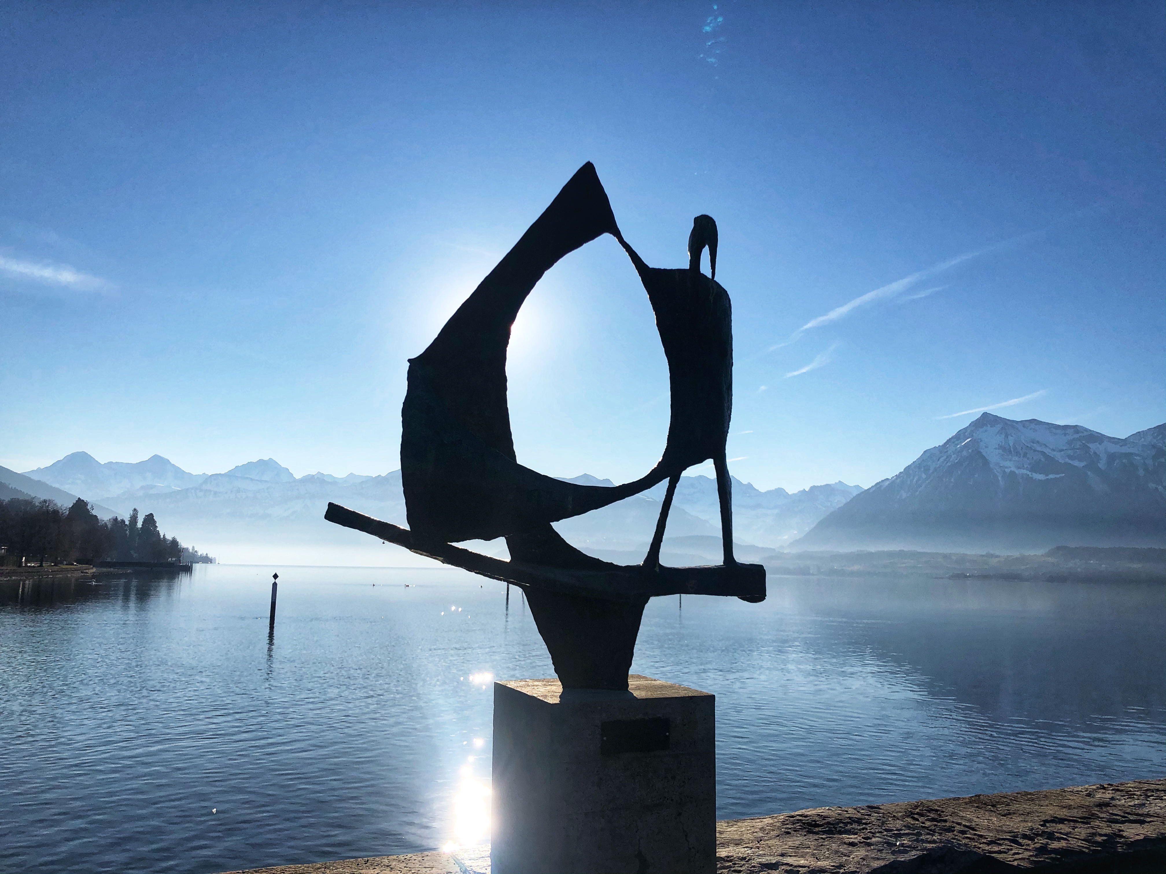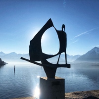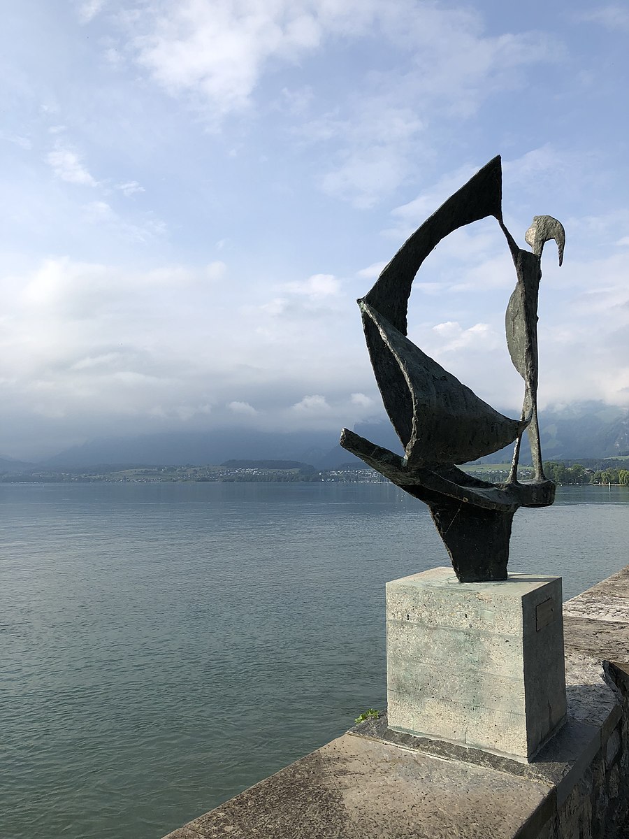 - Die Skulptur wurde 1958 in Biel gezeigt und steht heute am Ufer des Thuner Sees, Schadaupark