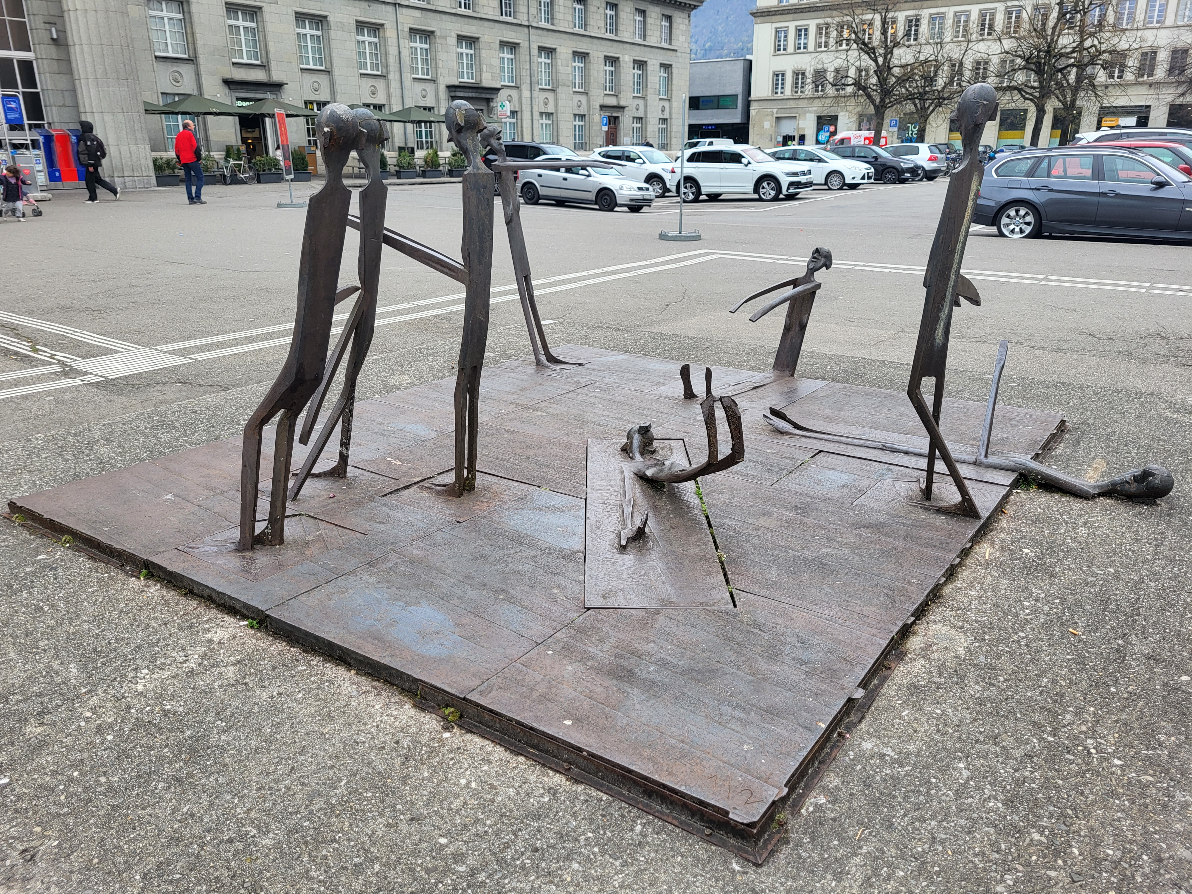- Die Eisenskulptur von Schang Hutter standen während der 7. ESS-SPA vor dem heutigen NMB Neues Museum Biel. Später wurde das Figurenensemble auf den Bahnhofsplatz verlegt und ist regelmässig Teil stadtpolitischer Diskussionen und Aktionen.
