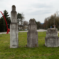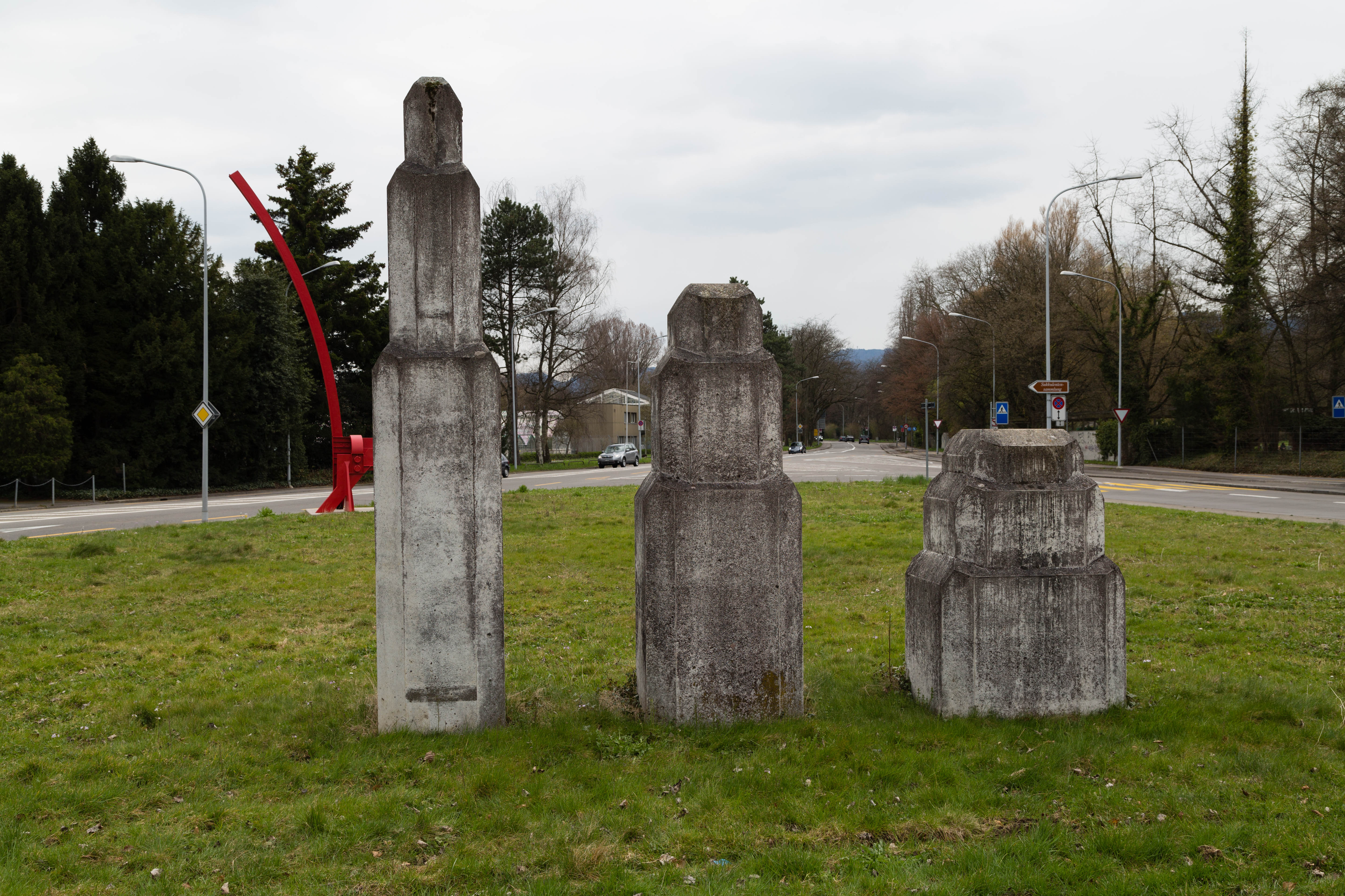 - Das Werk befindet sich heute in der Grünanlage Alfred-Escher-Strasse (Kreuzung Mytenquai/Alfred-Escher-Strasse) in Zürich. Es wurde unter dem Titel "Drei Figuren" für die Schweizerische Plastikausstellung entworfen.