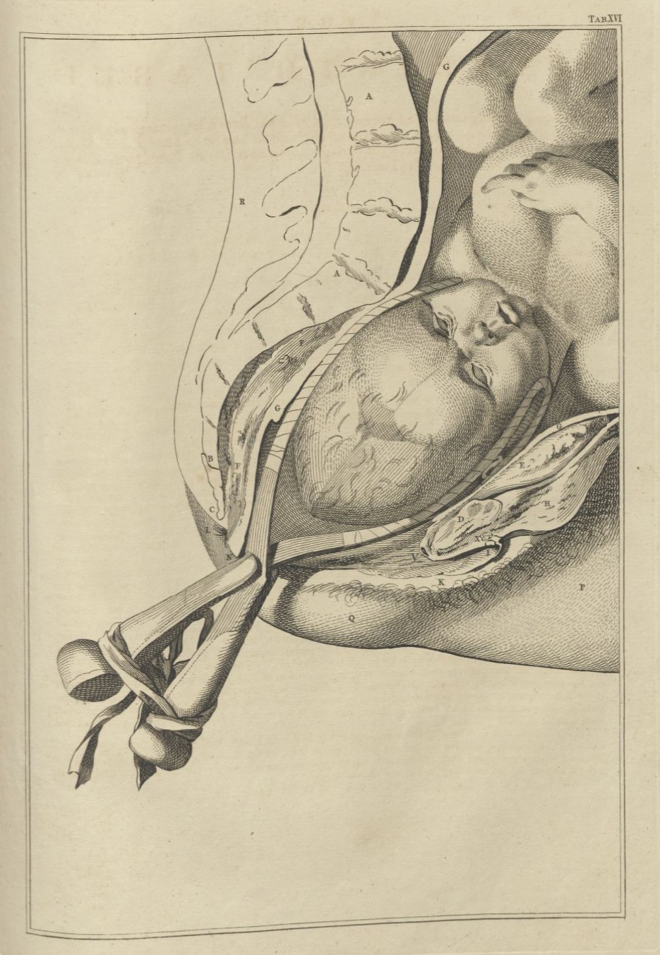 - Smellie, William: A sett of anatomical tables, with explanations and an abridgment, of the practice of midwifery, with a vieuw to illustrate a treatise on that subject, and collection of cases. London 1754. (Tafel 16)