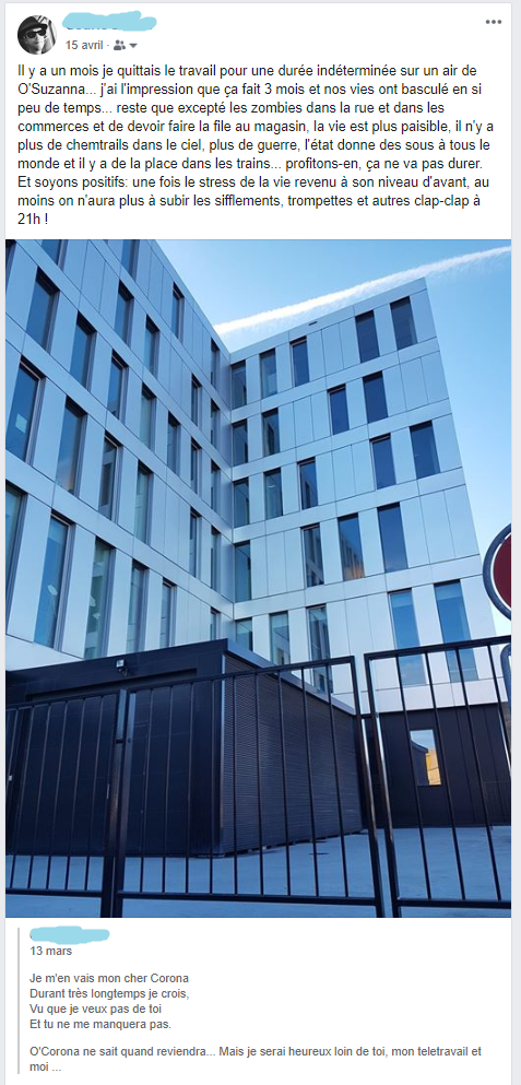 - Extrait de Facebook en avril, mémorial d'un mois et état des lieux