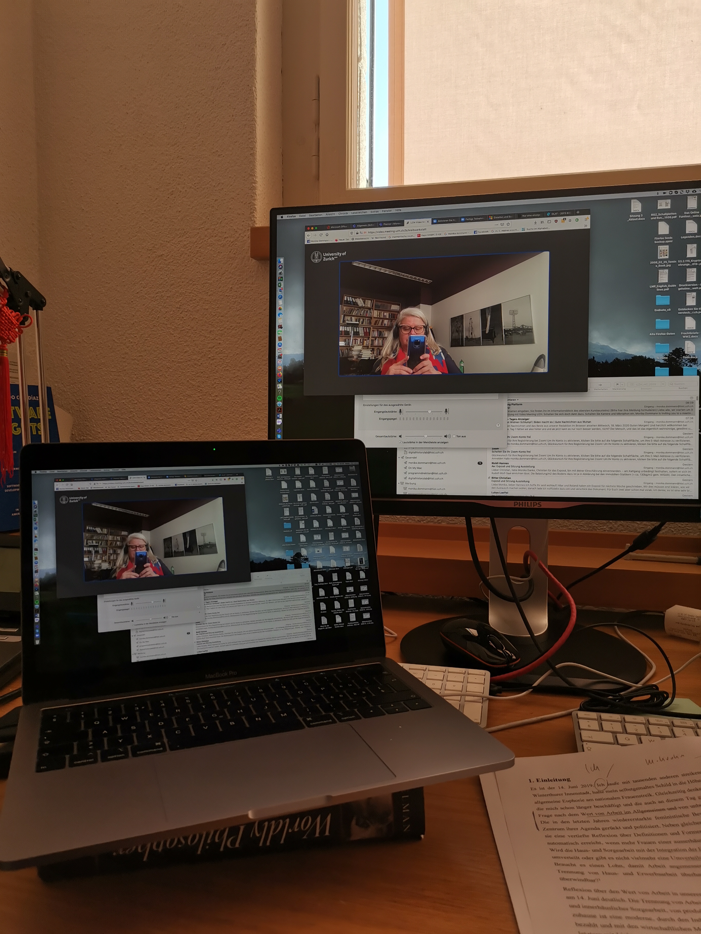 - Frühmorgens, erste Proben, noch in meinem Büro an der UZH. Leider die falsche Software (jitsi) .Nachher ist frau klüger.