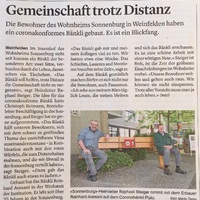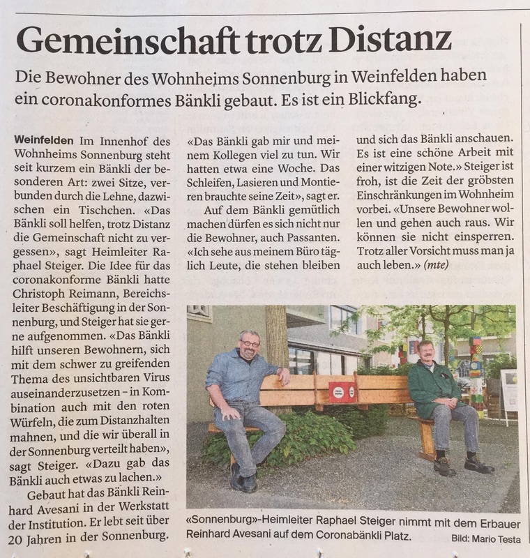 - Corona brachte persönlich Unsicherheit und dazu Distanz zueinander. Mit dem Coronabänkli bekam das Unsichtbare eine Gestalt und verlor viel vom ersten Schrecken. Es geht auch mal anders als gewohnt. Das Leben geht weiter!