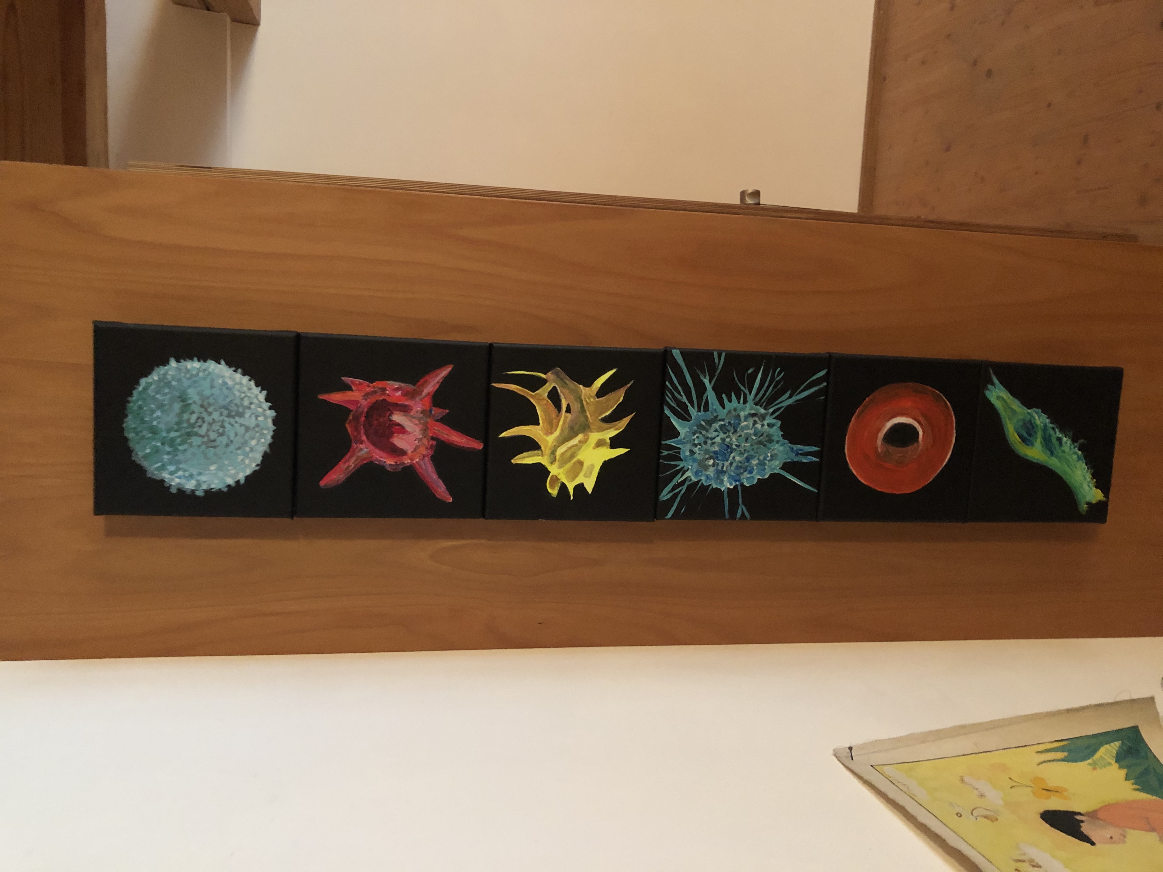 - Ich habe letzten Herbst ein Bild der Künstlerin Bernadette Madörin aus Zug gekauft, das Viren unter dem Mikroskop darstellt und künstlerisch umgesetzt wurden. Überraschende Vor-Corona-Zeit.