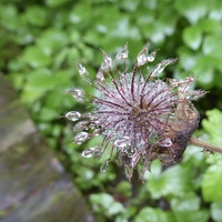 - Sogar Tautropfen auf dem verblühten Bachnelkenwurz verleiten zur Assoziation mit der Form des Corona-Virus mit dessen Spikes