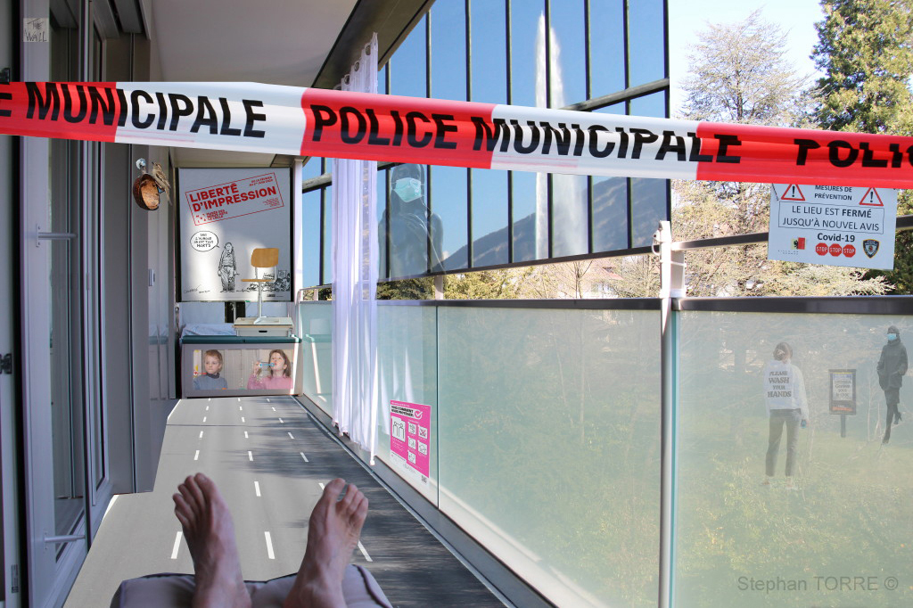- Des photographies originales prises dès l'annonce du conseil fédéral de la mi mars pour un projet de montages sur l'art du confinement, de mon isolement.