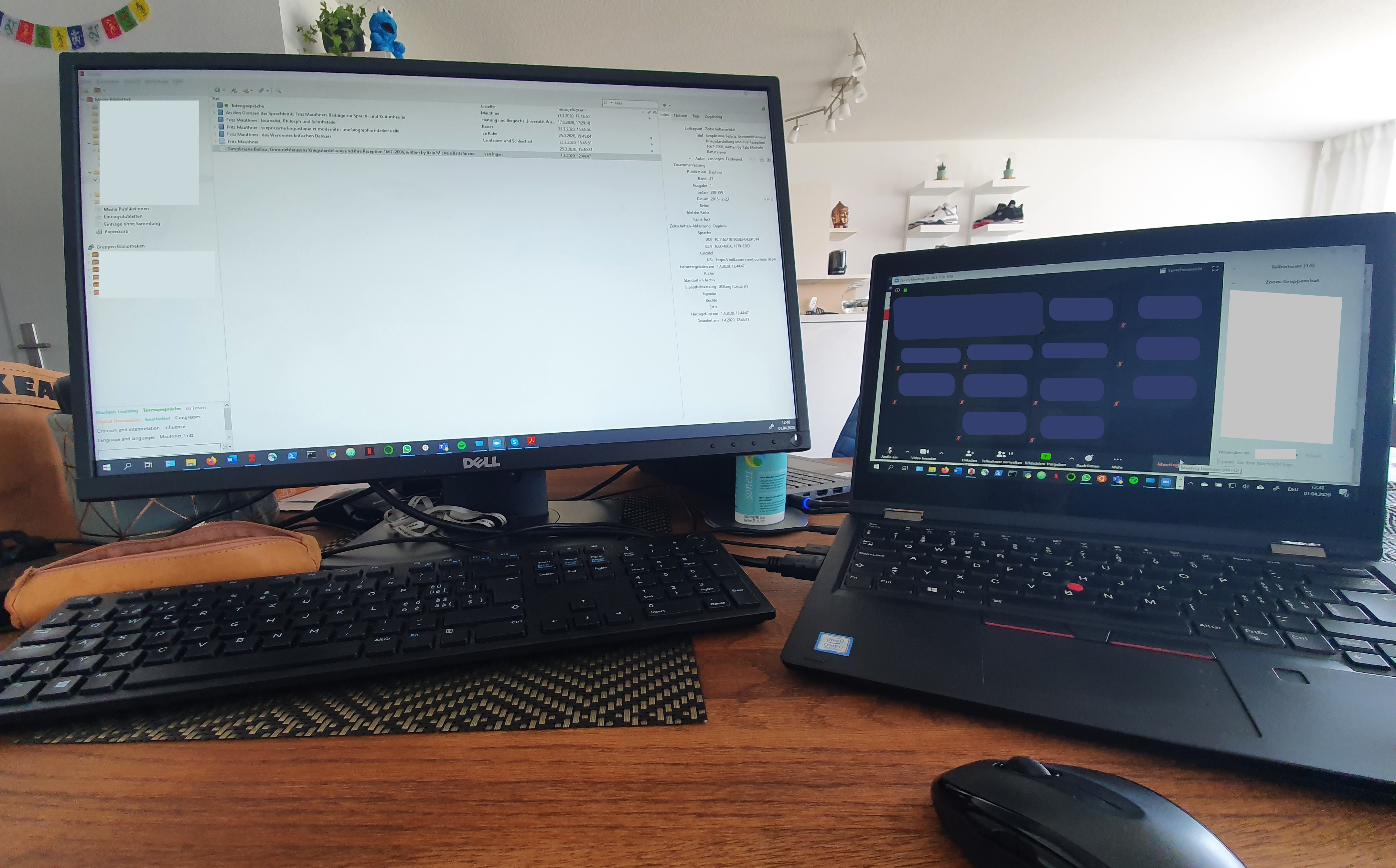 So wurde von der Universitätsbibliothek Bern die erste Online-Schulung des Literaturverwaltungsprogramms Zotero für Studierende der Universität Bern durchgeführt: Zuhause auf dem ehemals gemütlichen Wohnzimmertisch. Mit etwas spontan (über Nacht) angepasstem Schulungskonzept und -material war das eine sehr aufregende, ungewohnte, aber durchaus positive Erfahrung, direkt nach dem Lockdown.
