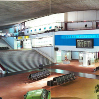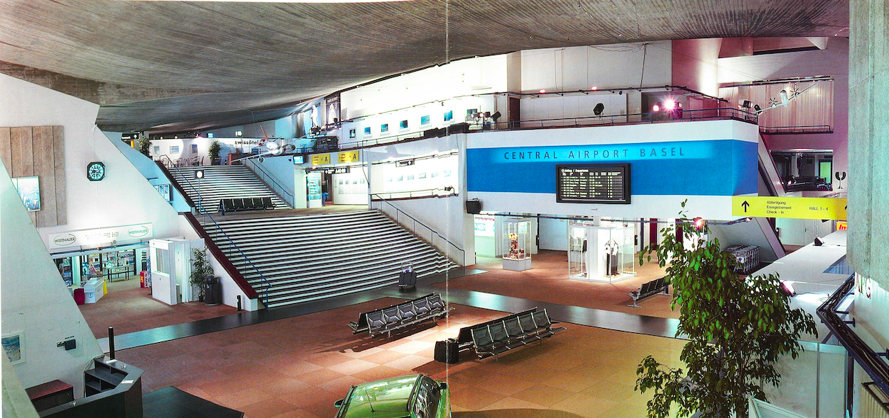 Guillaume Bijl, Central Airport Basel, 1996, Ausstellungsansicht Foyer Grosse Bühne Theater, Basel, 1996, Quelle: Ausst.-Kat.: Central Airport Basel, Galerie Littmann, 1996.