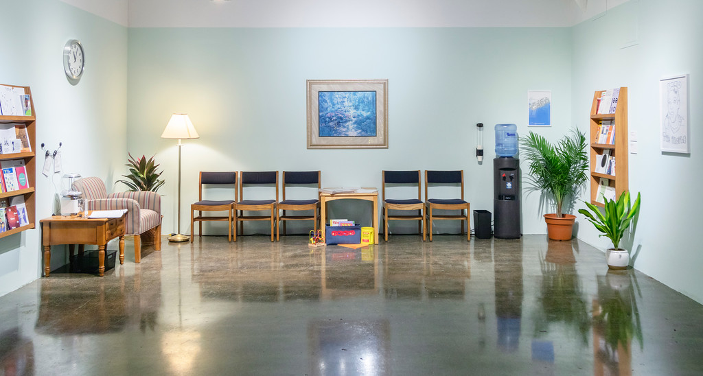 Carrie Schneider und Cassie Thornton , The Waiting Room, 2019, Ausstellungsansicht Red Bull Arts, Detroit, Foto: Clare Gatto, Quelle: artandeducation.net