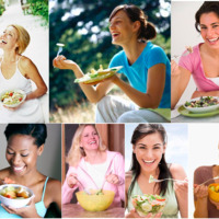 Women Laughing Alone With Salad
