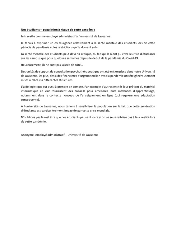 Nos étudiants – population à risque de cette pandémie