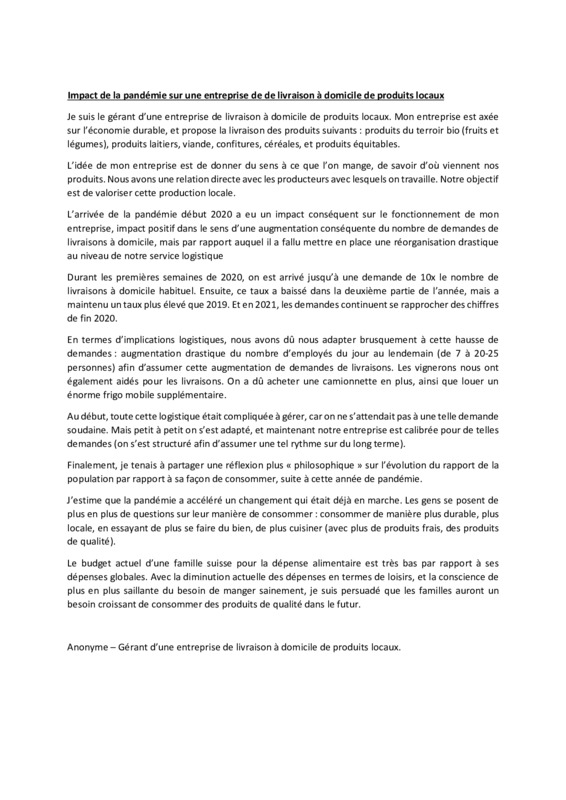 Teil von Impact de la pandémie sur une entreprise de de livraison à domicile de produits locaux