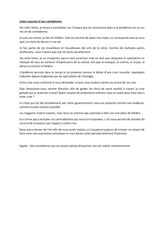 - Lettre ouverte d'une comédienne