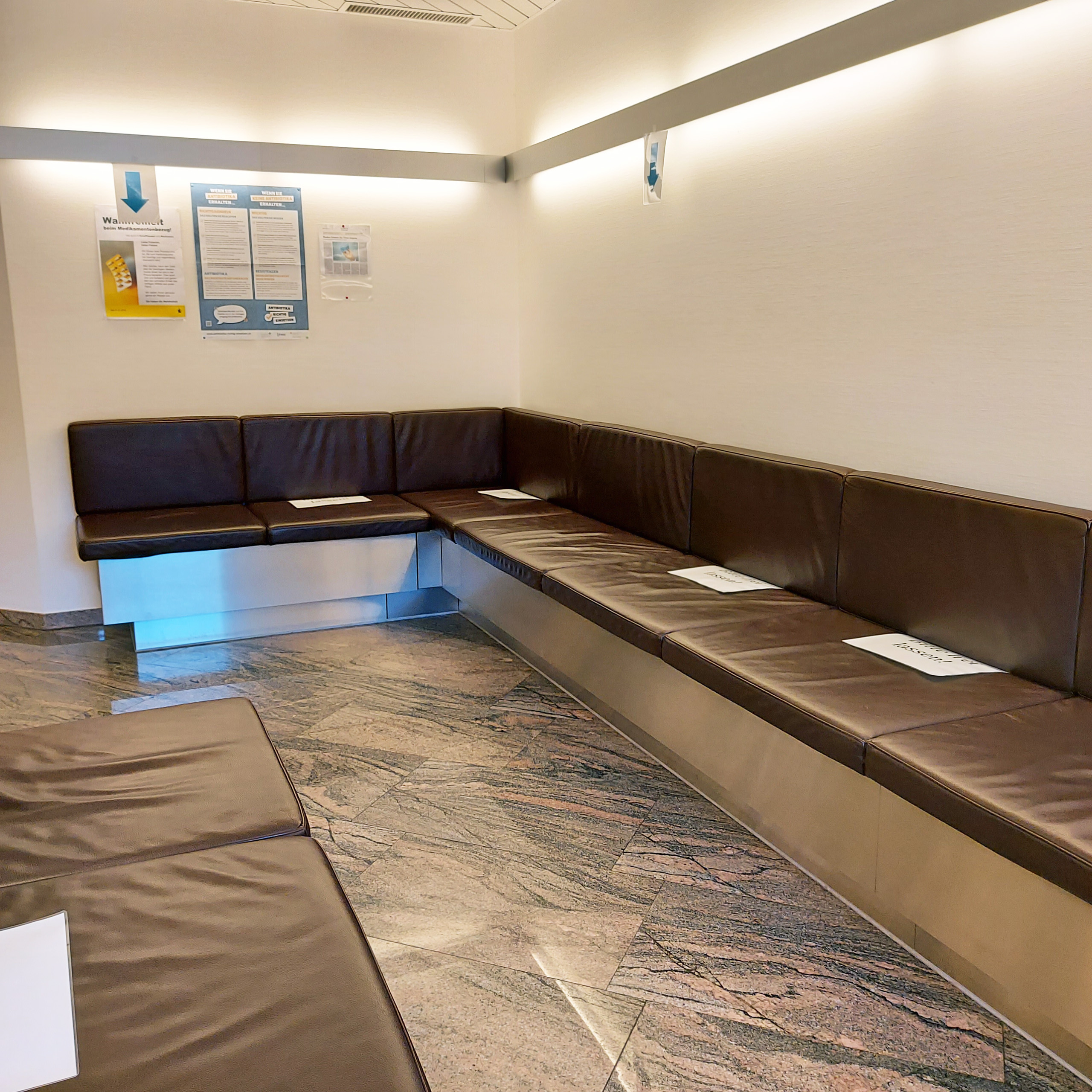 - Auch beim Ohrenarzt muss die Abstandsregel eingehalten werden. Deshalb werden Plätze im Warteraum gesperrt.