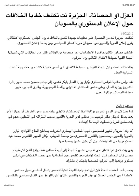 Teil von al-ʿAzl au al-ḥiṣāna.. al-Ǧazīra takšif ḫafāyā al-ḫilāfāt ḥaul al-iʿlān ad-dustūrī bi-s-Sūdān