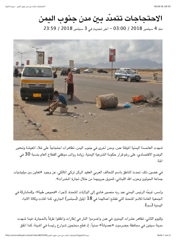 al-iḥtiǧāǧāt tatamaddad baina mudun ǧunūb al-Yaman
