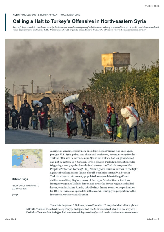 Calling a Halt to Turkey’s Offensive in North-eastern Syria