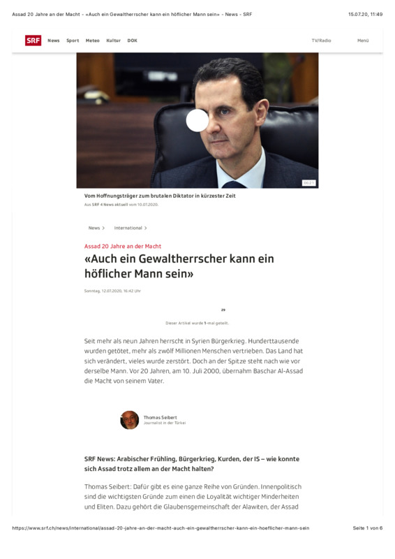 Teil von Auch ein Gewaltherrscher kann ein höflicher Mann sein. Assad 20 Jahre an der Macht