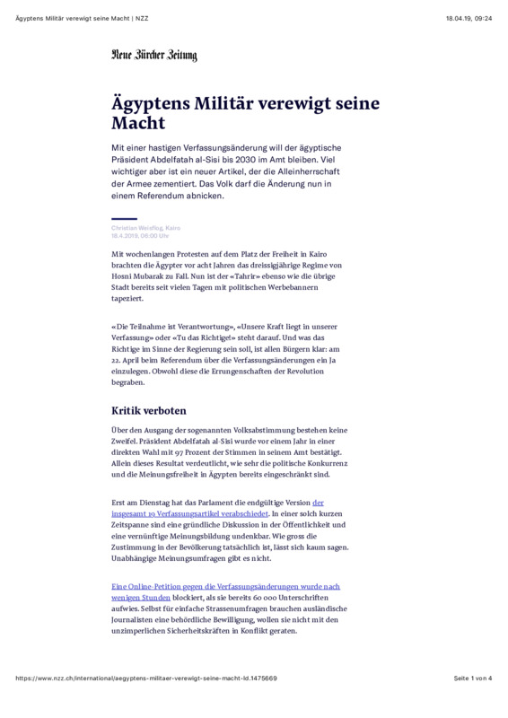 Ägyptens Militär verewigt seine Macht _ NZZ