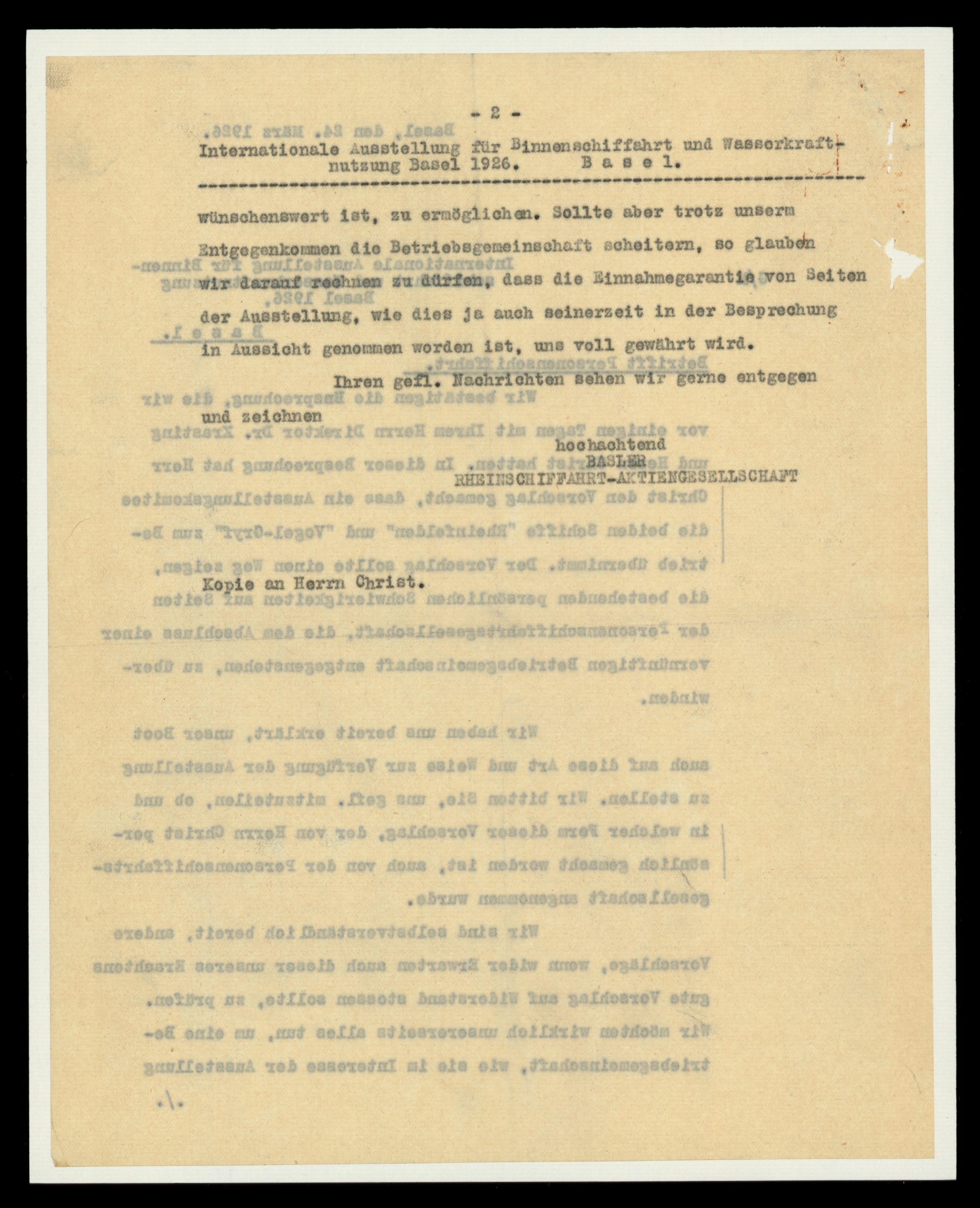- Herr P. Christ-Wackernagel, i/Fa. Paravicini, Christ & Co.