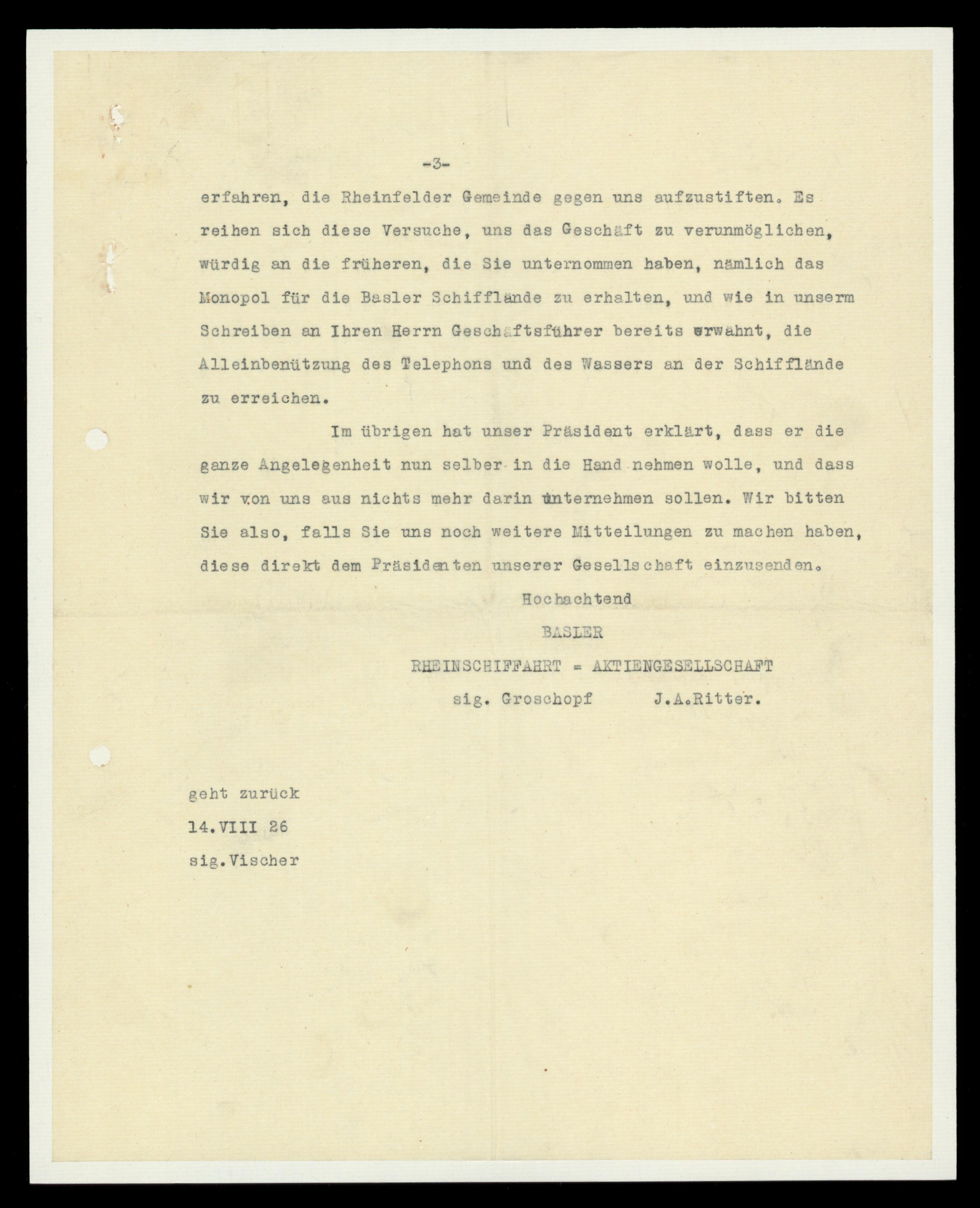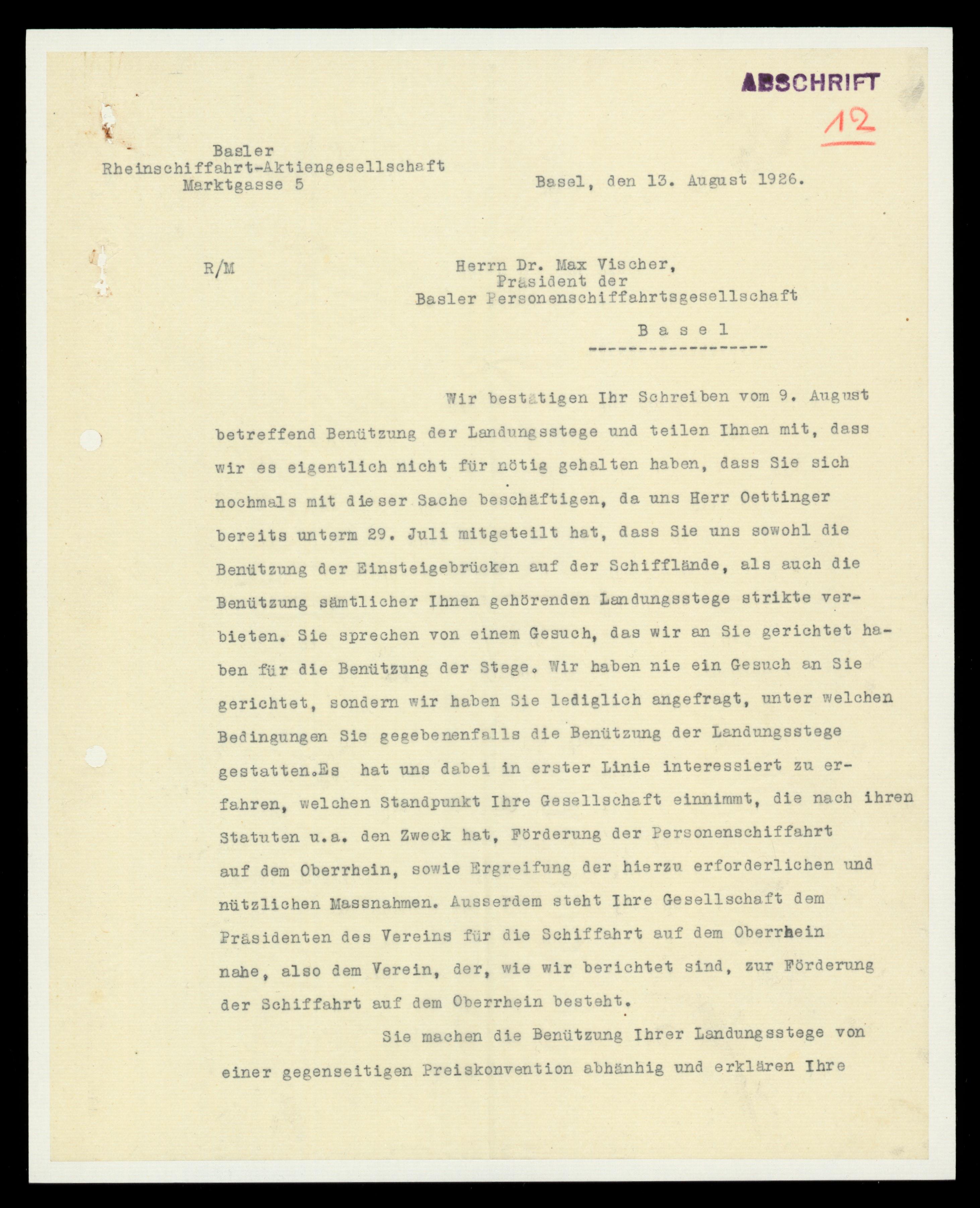 - Herr Dr. Max Vischer, Präsident der Basler Personenschiffahrtsgesellschaft