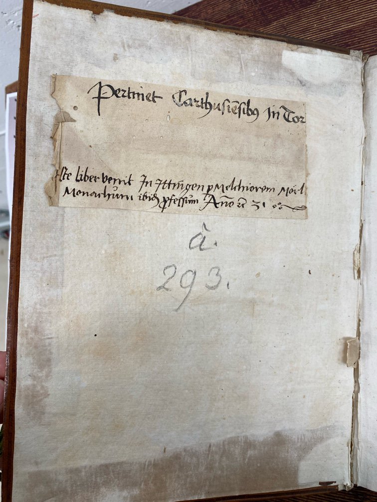 - auf Vorderspiegel: Pertinet Carhusiensibus in Tor[berg]