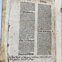 - am oberen Rand des Vorderspiegels: Liber Cartusienium in Portamonte vel Torberg donatus a domino Johanne Guth olim decano in Lissingen