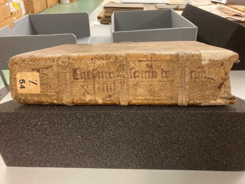 - auf Vorderspiegel: Ego Petrus de Monte rector ecclesie alme Virginis Friburgi