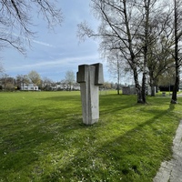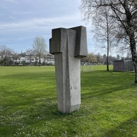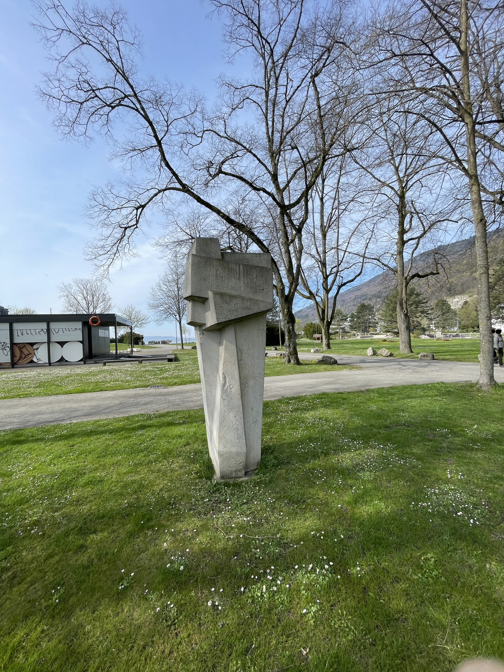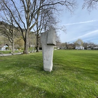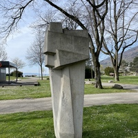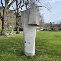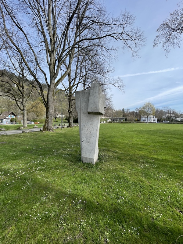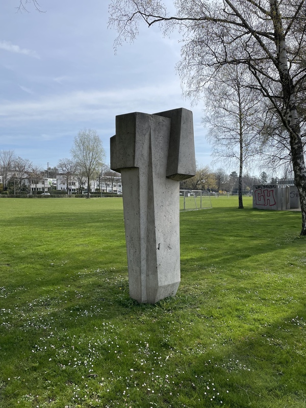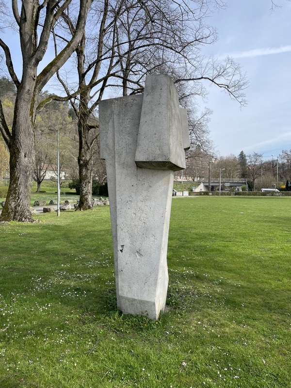 - Die Skulptur von Ödön Koch am Strandboden hinter dem Stradcafé, steht geradezu exemplarisch für die kompakte und kubische Formsprache, die Koch nach dem 2. Weltkrieg verwendete.