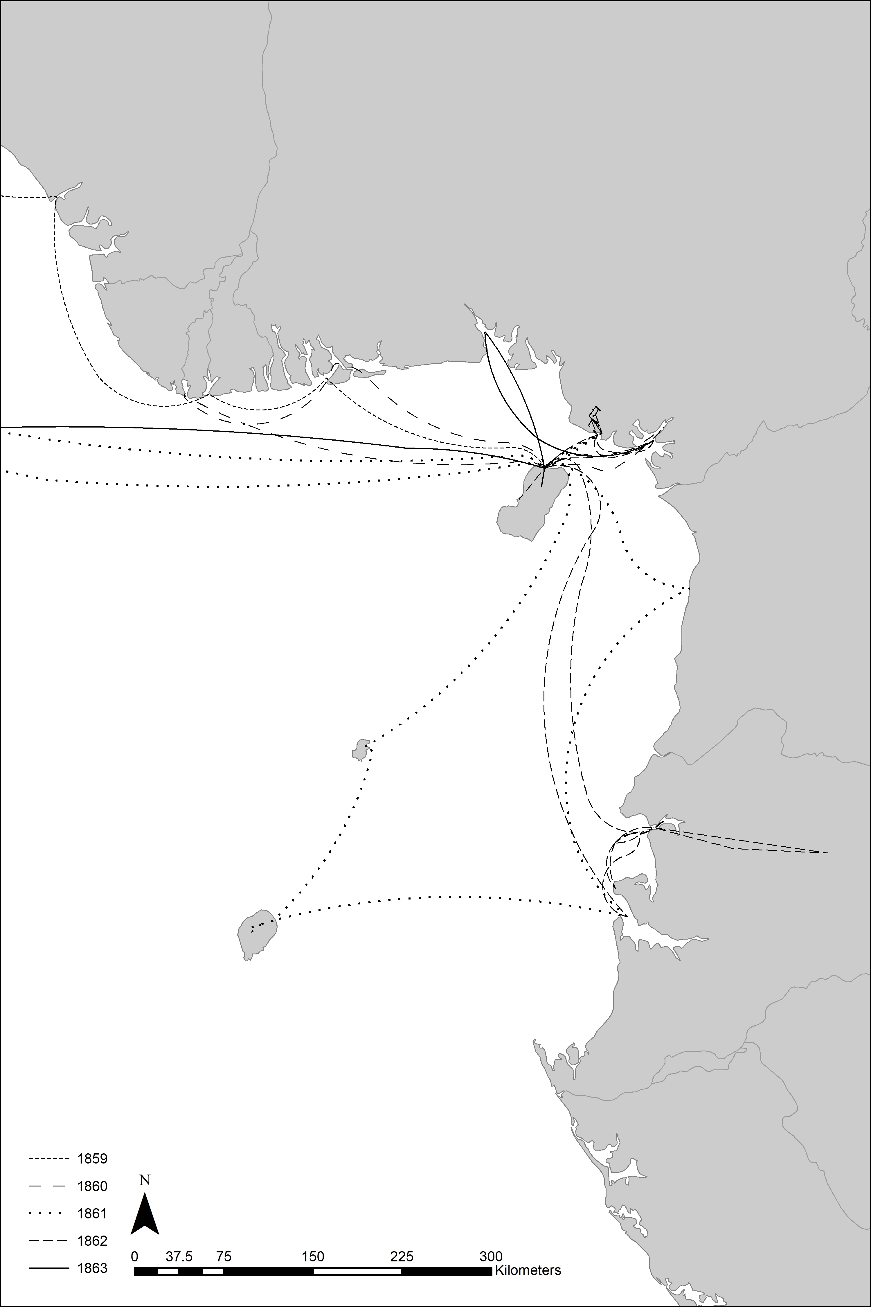 "Gustav Mann’s Travel Routes in West Africa, 1859-1863"