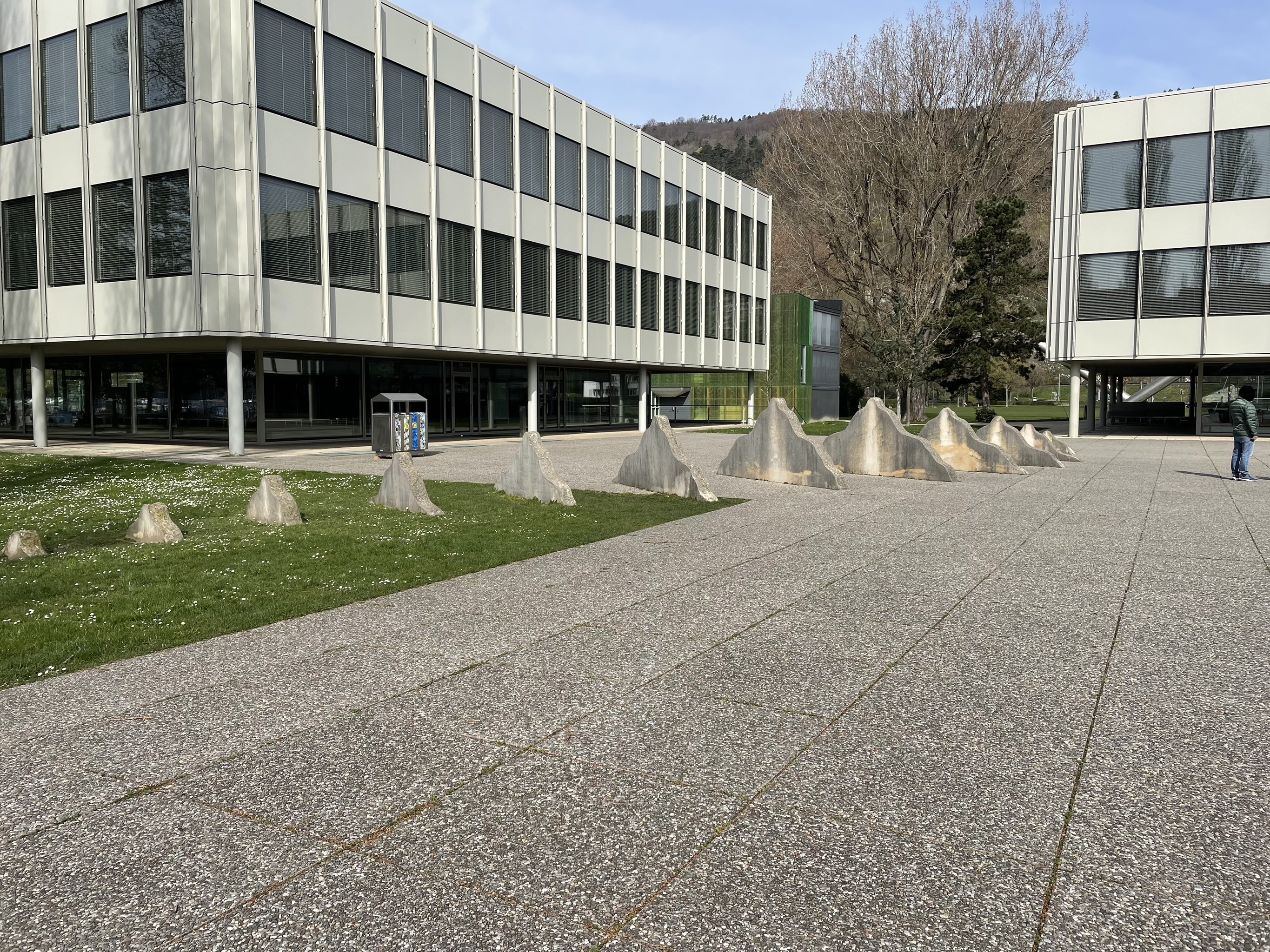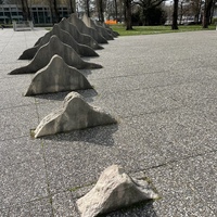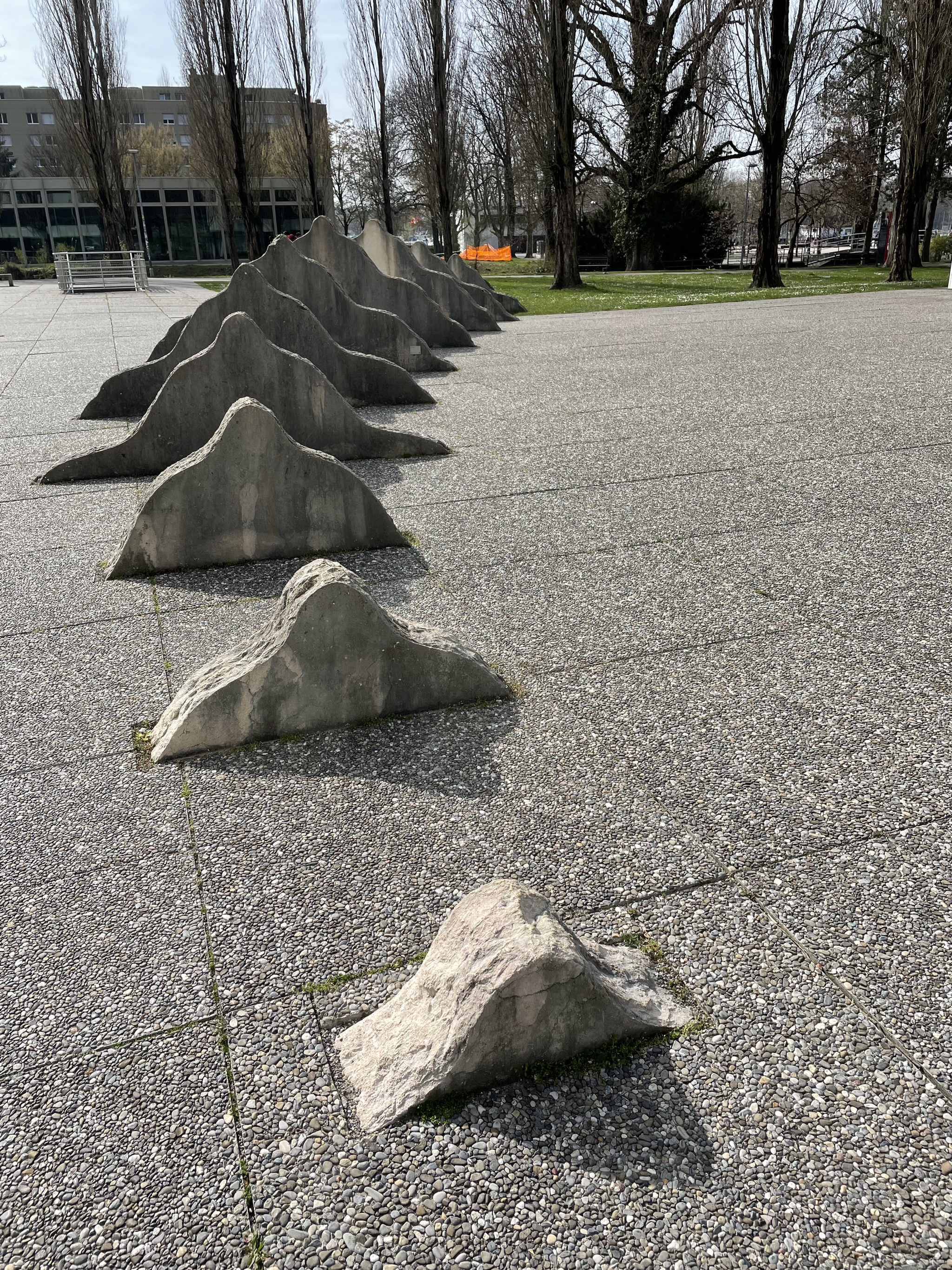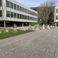- L'intervention de l'artiste bernois Ueli Berger se trouve directement en face du Strandboden sur le terrain du gymnase de Bienne-Seeland. Les 14 mini-montagnes de différentes tailles sortent du sol et forment une chaîne de montagnes qui augmente et diminue. La spécificité du lieu est inhérente à JURA. La chaîne de montagnes miniaturisée se trouve aux pieds du paysage déterminé par la chaîne du Jura.