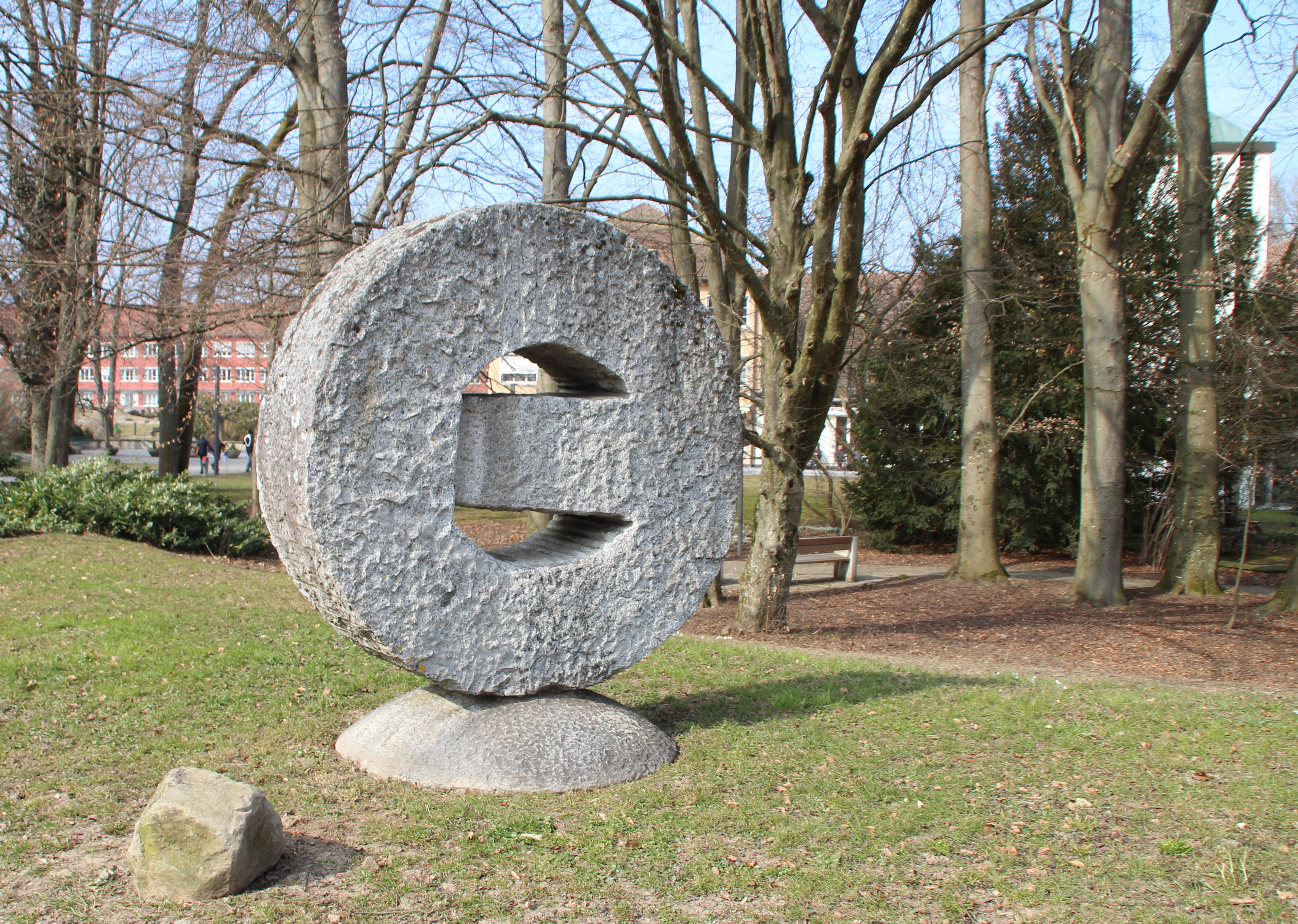 - Die Steinskulptur wurde an der 5. SPA gezeigt und steht heute im Park des Spitals Zollikerberg.