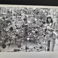 - Die Fotografie von Jeanne Chevalier zeigt die Künstlerin Lis Kocher beim Aufbau ihrer Installation "Euphorium". Das heute nicht mehr existente Werk setzte sich aus Eisen, Blech, Farbe, Mechanik, Ton und Efeublättern zusammen. Die Fotografie stammt aus einem Album, das Jeanne Chevalier im Rahmen ihrer fotografischen Dokumentation der 8. SPA anfertigte.