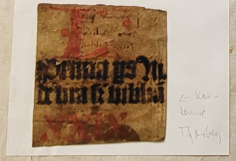- Der Besitzereintrag auf dem vorderen Spiegelblatt (an der Stelle, an der die Thorberger Einträge jeweils stehen) wurde herausgeschnitten.
