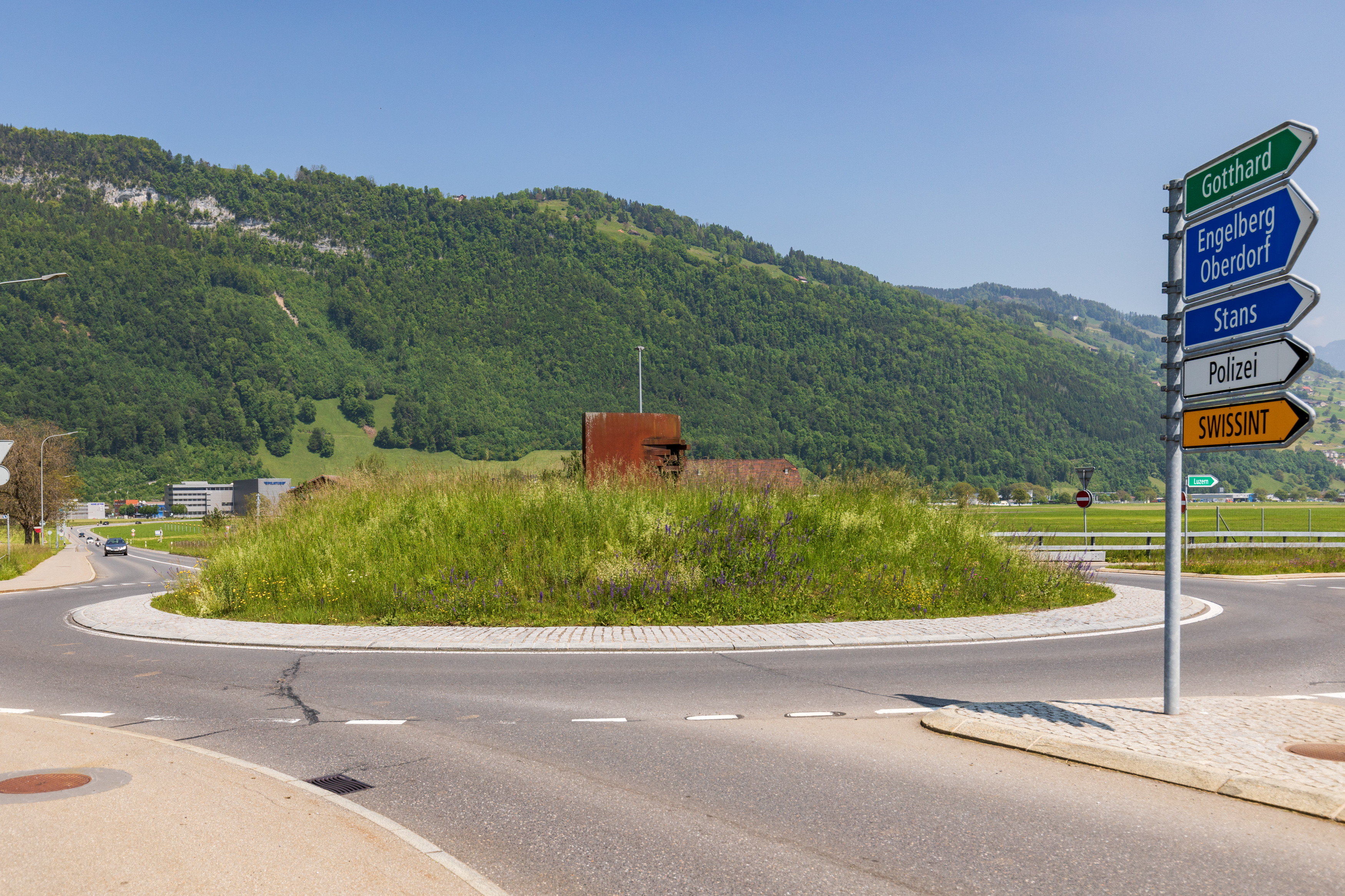 - Die Eisenskulptur "Figur VII" trägt den Beititel "Gebogene Wand" und ist heute im Besitz des Skulpturenparks Ennetbürgen. Dort wird sie täglich von etlichen Verkehrsteilnehmer:innen umfahren, denn sie befindet sich auf einem Kreisel.