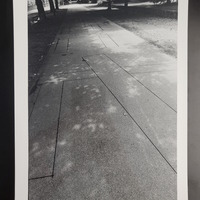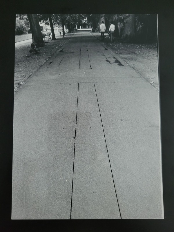 - Die Fotografie entstand während der Ausstellungsdauer der 8. Schweizerischen Plastikausstellung und zeigt den Zustand kurz nach Fertigstellung des Werks "Bodengravierung".