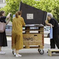 - Besucher:innen bei der Intervention "Framing Sculpture" im Mai 2023 anlässlich der Bieler Fototage. Die Stiftung Schweizerische Plastikausstellung und das Projektteam der Universität Bern informierten über die Geschichte der Schweizerischen Plastikausstellung in Biel.