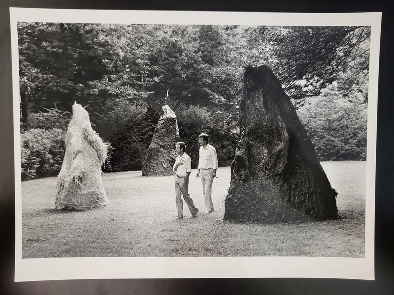 - Die Fotografie zeigt den Zustand der Skulpturen zur Ausstellungseröffnung. Da die Arbeiten Tiere anlockten, war die Veränderung über die Dauer der Ausstellung Teil des Konzepts.